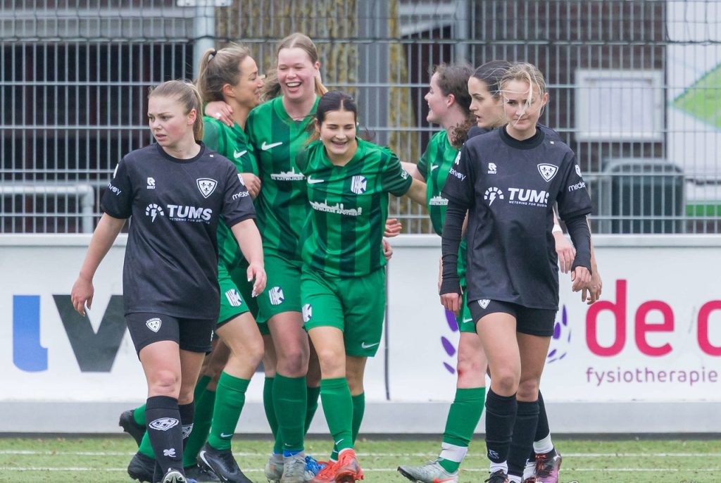 Vrouwen 1 heeft gisteren in Zeeland geen steek laten vallen in de strijd om het kampioenschap. In Kloetinge werd het 1-5.