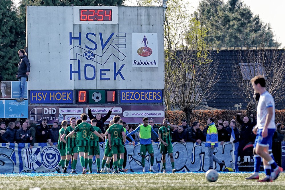 Kort daarna was het alweer gelijk. In plaats van de voorsprong te koesteren, werd er achterin niet scherp genoeg verdedigd zodat Hoek de 1-1 kon maken. Even dreigde het nog erger te worden, maar Jansen had een geweldige redding in huis. De staf probeerde met enkele wissels de bakens te verzetten.