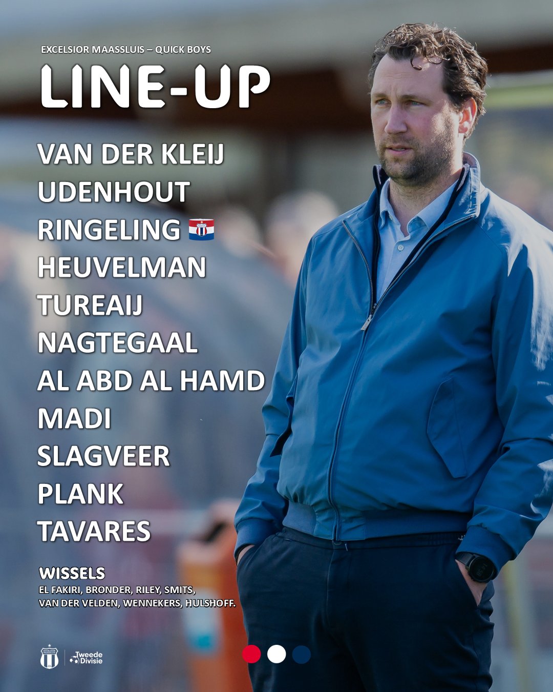 Het spelbeeld was vanaf de aftrap zoals je mocht verwachten. Quick Boys met een veldoverwicht, de thuisploeg loerend op een sporadische uitbraak. Door een te laag tempo voor rust waren kansen spaarzaam en bleven beperkt tot schoten van Hamann, Roep en Kroon. Die gingen over, net naast en in de handen van de keeper. De Tricoloros trokken een menselijke muur op, maar hadden aanvallend nauwelijks iets in te brengen.